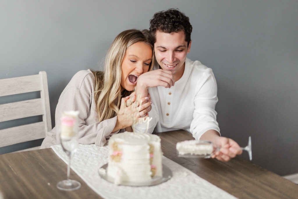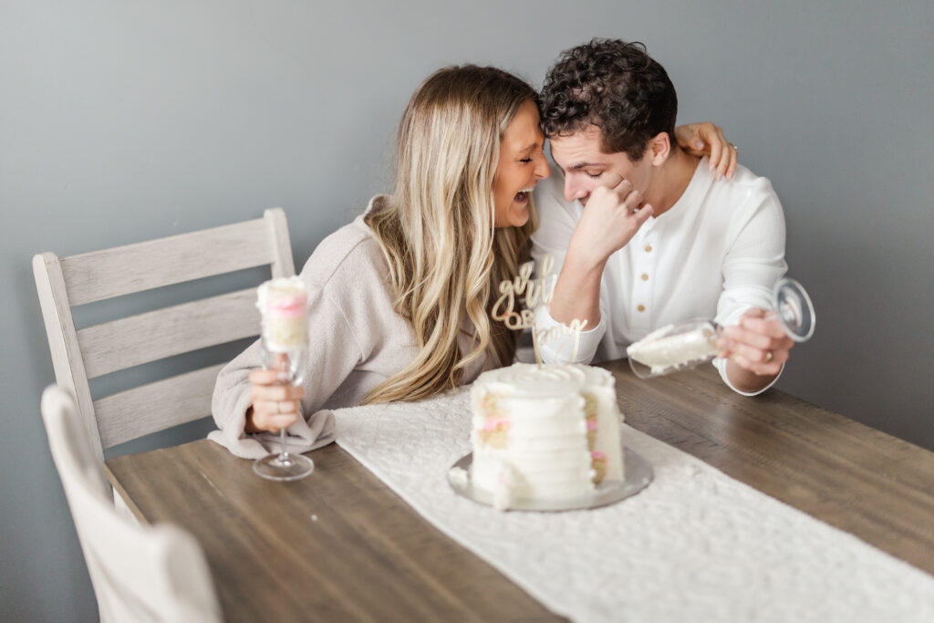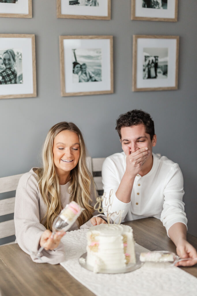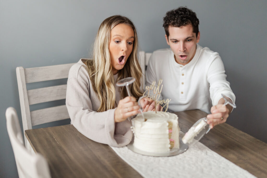 Marisa and Joey invited me into their home to document a small, quiet gender reveal for their first baby. No crowd. No confetti cannons. Just the two of them, a cake on the table, and a future about to shift.